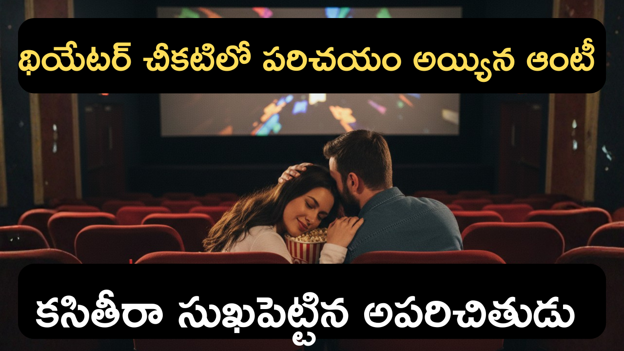 లేరు. అలా థియేటర్లో ఆఖరి వరుసలో కూర్చున్నాడు కదా పైగా సినిమాని చూసే పనిలో ఉన్న కొద్దిమంది జనాలు కూడా వెనకవైపు పట్టించుకోలేదు. నెమ్మదిగా మనవాడు కిందకి దిగి ఆంటీని ముద్దులతో ముంచెత్తి అసలు పని తప్ప అన్ని పనులు పూర్తి చేశాడు. అలా అన్నీ పూర్తయిన తర్వాత సినిమా కూడా పూర్తయింది. ఆ తర్వాత వీళ్ళద్దరూ బయట ఒక ఖాళీ ప్రదేశంలో కలుసుకొని వాళ్ళద్దరూ ప్లాన్ చేసుకొని ఆంటీతో వాళ్ళ ఇంట్లోనే ఒకరోజు ప్రోగ్రాం పెట్టుకొని గట్టిగా ఎంజాయ్ చేశారు. అలా ఎందుకు అయింది అంటే ఆంటీ వాళ్ళ హస్బెండ్ కి దూరంగా ఉంటూ చాలా సంవత్సరాల నుంచి